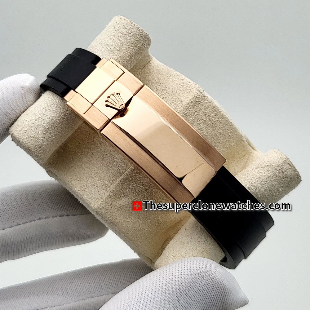 Rolex Cosmograph Daytona 18kt Everose Gold Oysterflex Bright Black and Sundust Dial Exact 1:1 Super Clone 4131 Swiss Movement Replica Watch Ref-126515LN